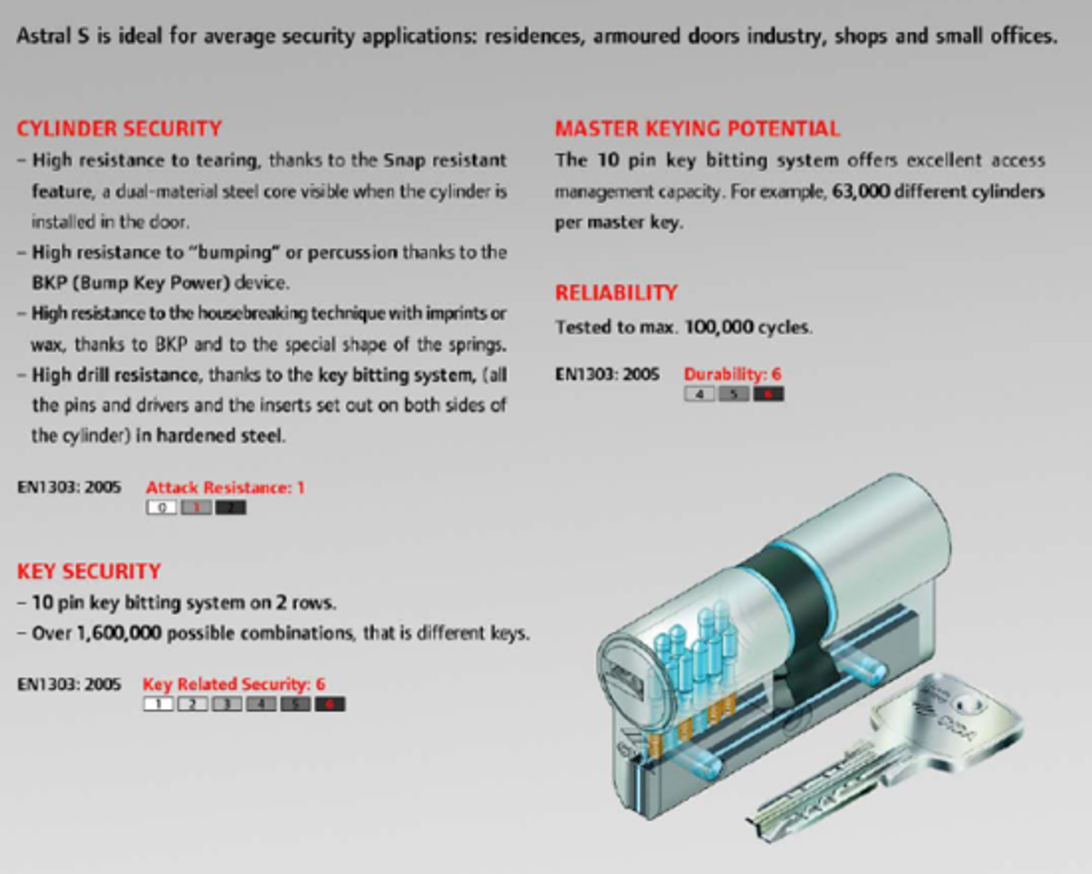 Astral S is ideal for average security applications: residences, armoured doors industry, shops and small offices.